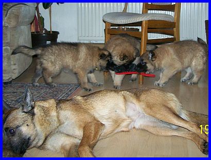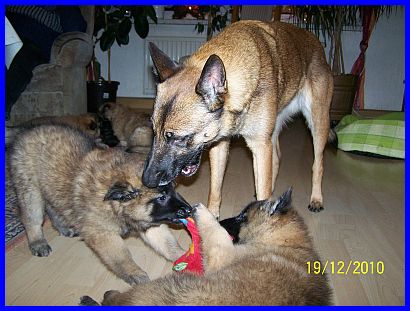 Domino spielt mit seiner Mama Abigail. Beide zeigen das typische Belgiergesicht, wir sind ja sooooooooooo gefährlich;-) |