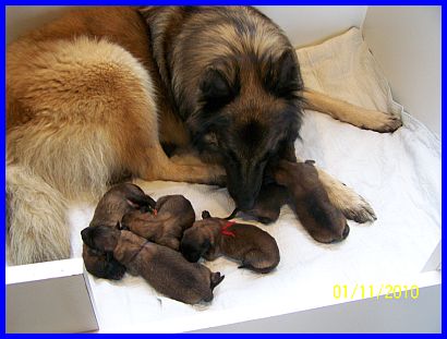 Abigail paßt gut auf ihre Babys auf, niemand kommt unbemerkt in die Nähe der Wurfkiste. |