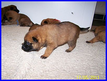 Nun sind die Kleinen schon drei Wochen alt, da ist die Wurfkiste nur noch wie ein kleines Gefängnis! Sie wollen raus, ihre Welt erobern! Also war Umzug angesagt, der Auslauf mußte her. Im Alter von 17 Tagen gab es schon mal eine kleine Freigang-Kostprobe, die die Zwerge perfekt gemeistert haben. Sie waren von der neu gewonnenen Freiheit total begeistert, sind die ersten richtigen Schritte