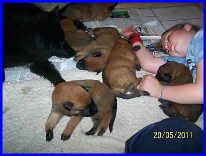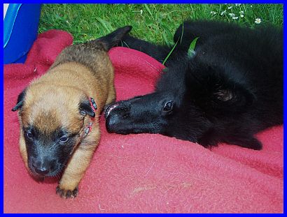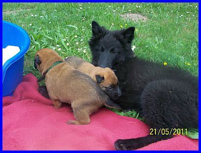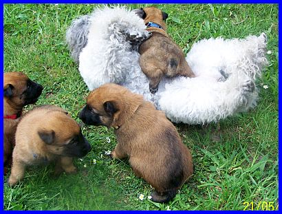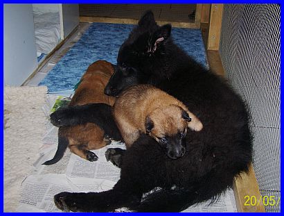Hurra, wir können aus der Kiste raus und haben eine richtig große Spielwiese. Mama paßt natürlich noch auf uns auf, aber wir haben auch schon Besuch bekommen. Vanessa war da und hat mit uns gespielt und gekuschelt! Yoopee, unsere große Groenendaelschwester;-), Yoopee ist erst 14 Wochen alt, darf jetzt auch zu uns kommen, das macht richtig viel Spaß!!! |