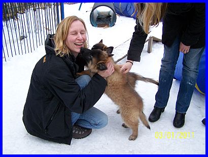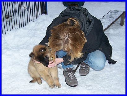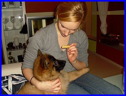 Das ist Saskia, bei ihr gibt es immer was zu naschen. Klar muß ich auch einiges dafür tun, so wie Danger auch. Aber ich bin ja eine kleine Intelligenzbestie, so sagt zumindest mein neues Frauchen, das mache ich doch mit links! Also sitz, platz und bleib sind meine leichtesten Übungen ;-)