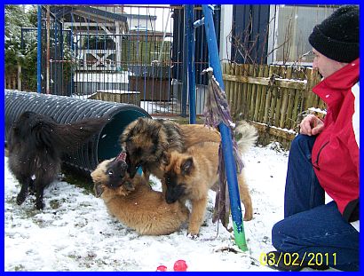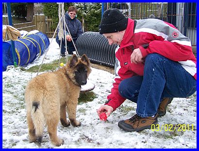 Hallo Mama und alle anderen, ich bin zwar noch nicht so lange fort wie meine Geschwister, aber ich schicke auch schon mal ein paar Grüße und Fotos aus meinem neuen Zuhause. Ach ja, ich bin´s, euer Don Vito! Mir geht es prima! Ich habe auch ein ganz tolles Zuhause bekommen, Die ersten Fotos zeigen, wie ich meine neue Familie bei uns zu Hause kennen gelernt habe, ich hatte Glück, war ja der letzte Bub! Wir habe richtig toll miteinander gespielt, und ich habe mich von meiner besten Seite gezeigt.