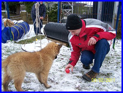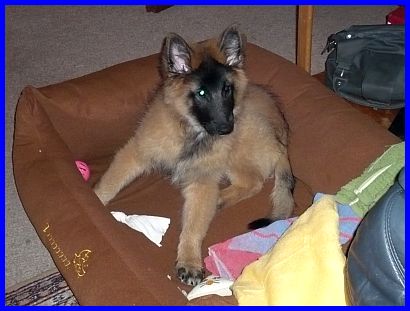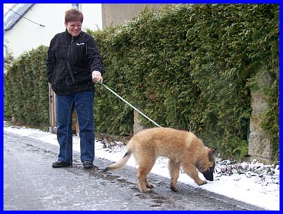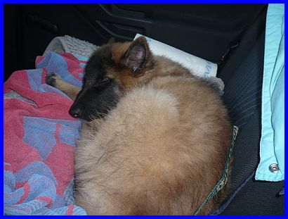 Hier sind wir schon auf dem Weg zum Auto. Die ganze lange Fahrt habe ich geschlafen, hatte ja von meinem neuen Frauchen eine schöne Kuscheldecke bekommen. Im neuen Zuhause angekommen habe ich erst einmal das neue Körbchen in Besitz genommen. Dann habe ich im Garten einen super Fußball gefunden, den habe ich natürlich, so schön dreckig wie er ist, sofort mit zu meinen Sachen gepackt ;-)