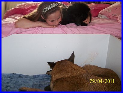 Sieben Stunden vor der Geburt, Avanti kuschelt mit Thomas. |