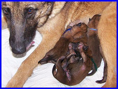 Die ersten vier Babys schmatzen begierig an Avantis Milchbar ;-) |