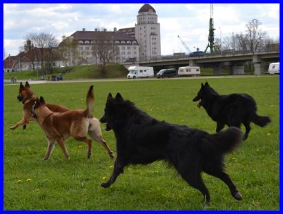 Nachdem Farah-Jane Enzo eine richtige Abfuhr erteilt hatte, machte sich Enzo auf die Suche nach einer neuen Kurzzeitfreudin. Diese Windhunddame war ihm dann aber doch zu schnell ;-)) |