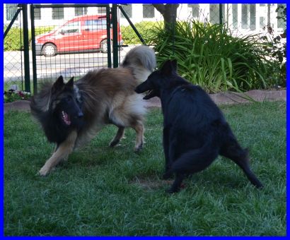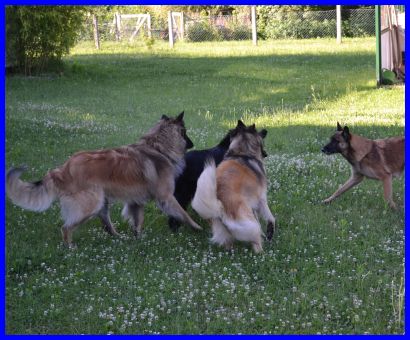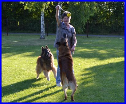 Die nachfolgenden Fotos zeigen unsere und andere Hunde beim gemeinsamen Spiel auf dem Ausstellungsgelände. Bärbel bespaßt ihre zwei Rüden, Vanessa findets toll und die beiden Rüden ebenfalls. Es war eine Freude, dem Treiben zuzusehen! |