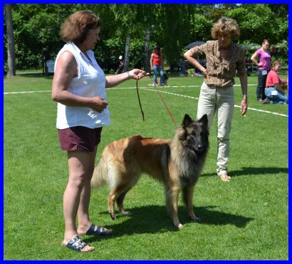 Nun war Canis an der Reihe, die beiden nachfolgenden Fotos! Da Katrin den ganzen Tag Richterberichte geschrieben hat, durfte ich Canis ausstellen. Canis ist jetzt drei Jahre alt und ein richtiger Rüde! Stolz und voller Eleganz hat sich mein Großer präsentiert und von Frau Bidaut ein V erhalten. Am nächsten Tag wurde er von Frau Krug mit Vorzüglich angekört, hier gehts zum Bericht über die Körung. |