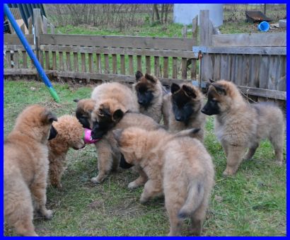 Auf den nachfolgenden Fotos können Sie die Entwicklung meiner Babys von der achten bis zur vollendeten neunten Woche sehen. Die Zeit ist unendlich schnell vergangen, seit dem 26.12.2012 dürfen die Welpen in ihre neuen Zuhause gehen. Freyja und Filou sind schon umgezogen, sie bringen jetzt neuen Schwung in das Leben ihrer neuen Besitzer. Farouche wird zu Hause bleiben, und für die anderen fünf suche ich nun noch liebe Familien, die es mit so einem entzückenden Wirbelwind aufnehmen möchten. Bei Interesse schicken Sie mir einfach ein Mail oder rufen mich an!
