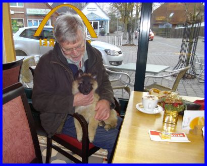 Hier seht ihr mich mit meinem Dosenöffner in einer Gaststätte, da wollten mich doch tatsächlich alle Leute angrabschen, weil ich ja so süüüüß bin! |