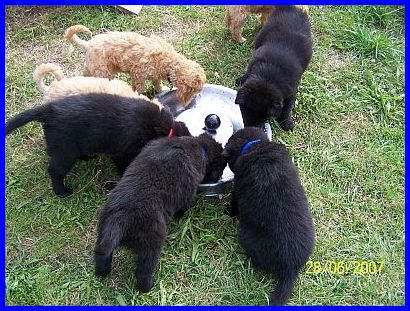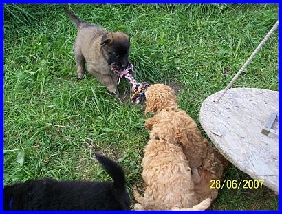 Pudelgeschwister. Nur wenn es regnet, dann gehen wir in unser Welpenhaus,