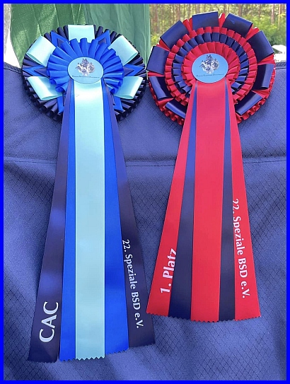 Auf der BSD Speziale in Hohen Neuendorf bekam Ola von der ehrenwerten Richterin Frau Zuzana Mrnakova eine super Bewertung und V1, Anw. Dt. Ch. VDH, CAC, Beste Hündin und das BOS! Was für ein Erfolg, ich freue mich riesig für Euch!!!