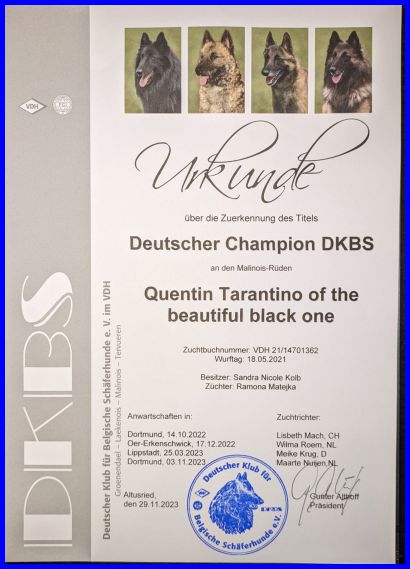 Am 29.11.2023 erhielt Quentin den Titel "Deutscher Champion (Klub) DKBS "!