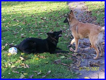 Hier besuche ich meine Schwester Betty in Naumburg. Sie hat ein ganz tolles Zuhause, einen riesengroßen Garten und gleich daneben auf der einen Seite ein ehemaliges Naturschwimmbad und auf der anderen Seite einen Hundeplatz mit ganz prima Hundesportgeräten. Dort waren wir überall und hatten echt viel Spaß.