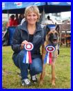 Hier ist Ebony mit Frauchen Kerstin auf ihrer ersten Ausstellung in der Jugendklasse, sie hat V1 und die Anwartschaft auf den Deutschen Jugendchampion erhalten! Herzlichen Glückwunsch Kerstin! Ebony ist hier 10 Monate alt.