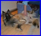 Hier ist Fiona mit ihrem Bruder Finn und Schwester Farouche, sie sind 14 Wochen alt. Wir waren bei Moni und Micha zu Besuch, die Knirpse hatten sehr viel Spaß miteinander!