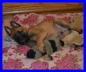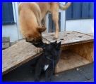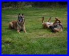 Wir haben Besuch, Helga und Rolf sind mit ihrem neuen Belgier, A.J., zu Besuch. Gino ist 14 Wochen alt.
