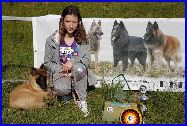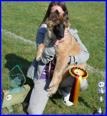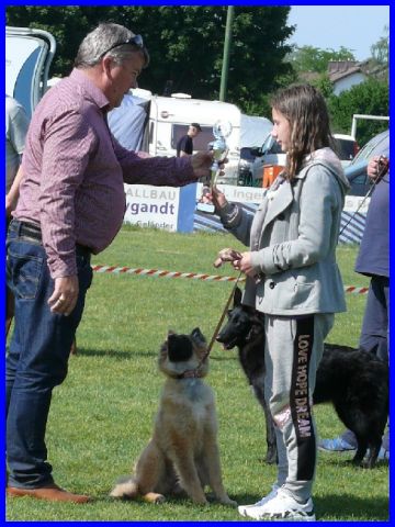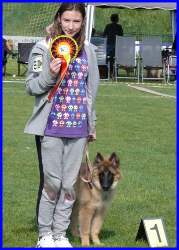 Am 19.05.2018 wurde LaVie das erste Mal ausgestellt, da war sie gerade 4 Monate alt und stand deshalb in der Babyklasse. Sie hat den 1. Platz bekommen und wurde als "Schönster Hund der Babyklasse" ausgezeichnet. Vorgeführt wurde LaVie von Celine, sie hat LaVie super gut präsentiert. Herzlichen Glückwunsch, Celine, ich freue mich riesig für und mit Euch. Danke für die schönen Fotos.