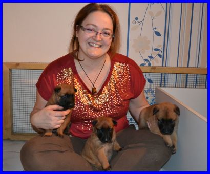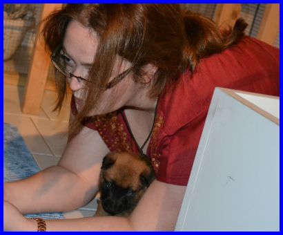 He, Baby, lass uns spielen! Ich mach mich auch ganz klein für dich;-) Sandra macht immer ganz viel Unfug mit den Welpen. Sie hat ihnen natürlich wieder beigebracht, wie man heult wie ein Wolf. Am talentiertesten war die kleine Gloria :-)) |
