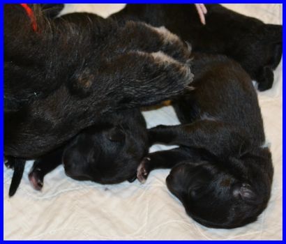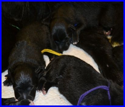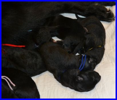 Geschafft, alle Welpen sind gesund und putzmunter und trinken YooPees Milchbar leer! |