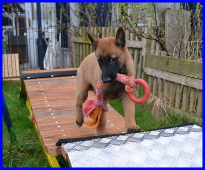 Über die Welpenhängebrücke zu laufen macht so richtig Spaß. Auch wenn der Boden wackelt, Angst davor hatte keiner der Welpen. |