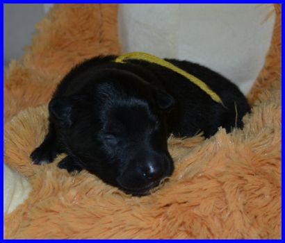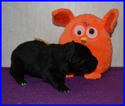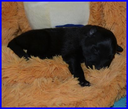 Welpe Nr. 4, ein kleiner Rüde, hat sein Geburtsgewicht auch bald verdoppelt: