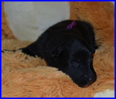Die kleine Hündin mit dem rosa Band hat ihr Geburtsgewicht ebenfalls fast verdoppelt. Sie wiegt jetzt: