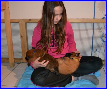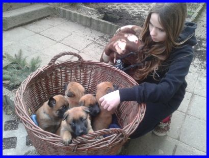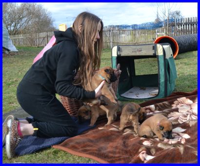 Am 12.02.2014 sind die Welpen das erste Mal Auto gefahren. Sandra hat sie mit nach Leipzig in ihren Hundesalon genommen. Die Autofahrt haben sie mit Bravour gemeistert, keiner hat gejammert oder gebrochen, einfach prima! |