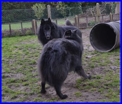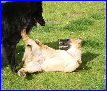 Ich hatte Abigail, meine 8Jahre und 6 Monate alte Tervuerenhündin mitgenommen, sie hat sich auch sofort in diesen kleinen Charmbolzen verliebt! Abbi hat mit ihm gespielt, hat ihn umgarnt und verführt, als wenn sie 3 Jahre alt und läufig wäre!