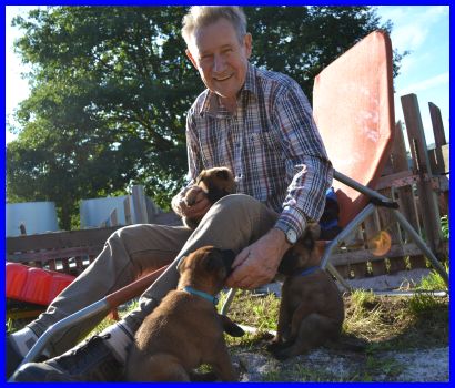 Ralf macht sich extra klein für die Welpen, so konnten sie richtig mutig den fremden Menschen erkunden und kennen lernen!