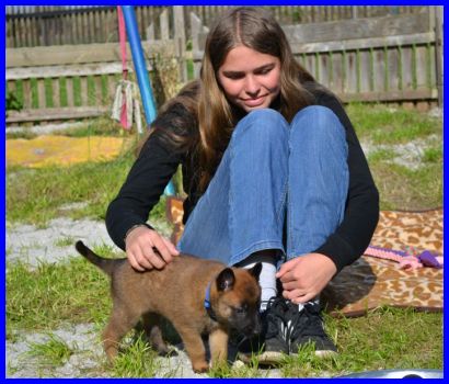Am 06.10. 2015 waren Ralf, Kerstin, Julia und natürlich ihr Mali Gloria-Fine zu Besuch bei den Babys. Gloria ist aus dem G-Wurf, und da sie den gleichen Papa hat, sind sie wirklich Geschwister! Also kleine Akela, das ist Gloria, deine große Schwester! |