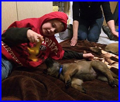 Am nächsten Tag, den 12.10.2015, war Diana zu Besuch. Auch Diana kommt fast jedes Mal meine Babys knuddeln, dieses Mal leider ohne Leena, ihre Tervuerenhündin. War trotzdem schön und die Babys waren begeistert, wieder jemand neues da mit dem man Spaß hatte. |