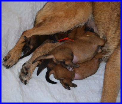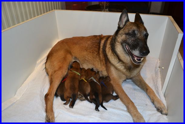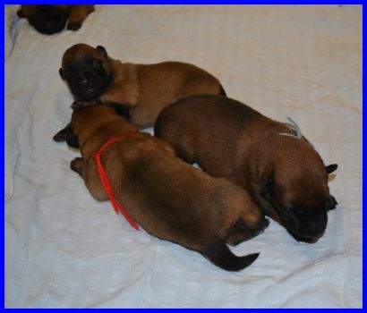 Avanti ihre Babys entwickeln sich prächtig. Natürlich verbringen sie die meiste Zeit mit schlafen und trinken, es passiert noch nicht viel in der Wurfkiste. Dennoch kann man auf den Fotos sehr gut die enorme Entwicklung der Welpen sehen, alle haben ihr Geburtsgewicht mehr als verdoppelt.