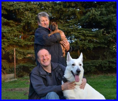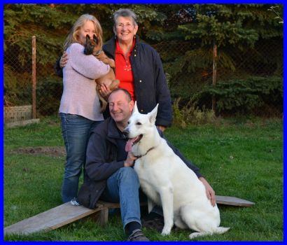 Khenan war der erste Welpe, der in sein neues Zuhause gegangen ist. Er wohnt jetzt in Berlin, hat einen tollen Hundekumpel, Maddox ein weißer Schweizer Schäferhund, und ist sehr glücklich mit seinem neuen Herrchen. Total entspannt liegt er auf dem Arm von Karsten, das war Liebe auf den ersten Blick!