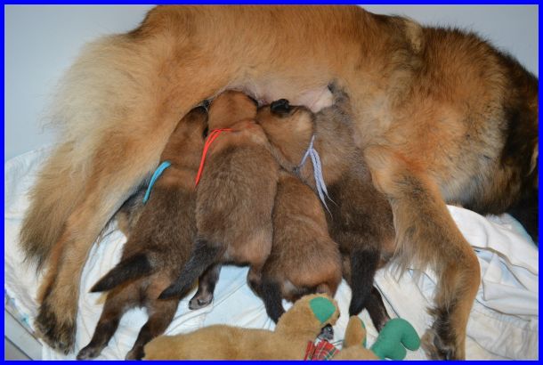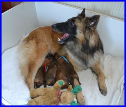 Farouche verbringt sehr viel Zeit mit den Welpen, ist genau so eine Übermutter wie ihre Mama Abigail!