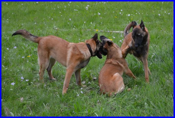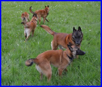 Nach der Ausstellung haben Hadés, Woody und meine vier Mali BBO´s auf der Wiese neben dem Ausstellungsgelände richtig schön gespielt, hier sind ein paar schöne Bilder von den Jungspunden. Akela ist der einzigste Hund, der kein Halsband trägt. Ist darum relativ leicht zu erkennen. Itchy und Isaak sind etwas intensiver in der Farbe, Akela und Khenan sind etwas heller. So kann man sie ein wenig auseinander halten.