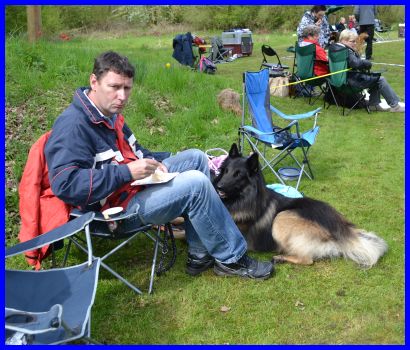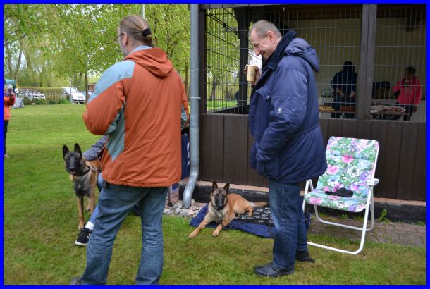 Sandra und Moni fachsimpeln :-) die Tervueren Rüden, vorn Danger dann Vito und hinten Canis, stehen im Ring!