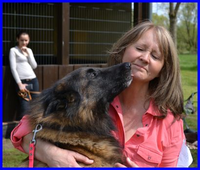 Elke war nur zum Kennen Lernen gekommen! Nun lebt Jim Bob bei ihr und auf der nächsten Ausstellung im Herbst stehen sie selber im Ring! |