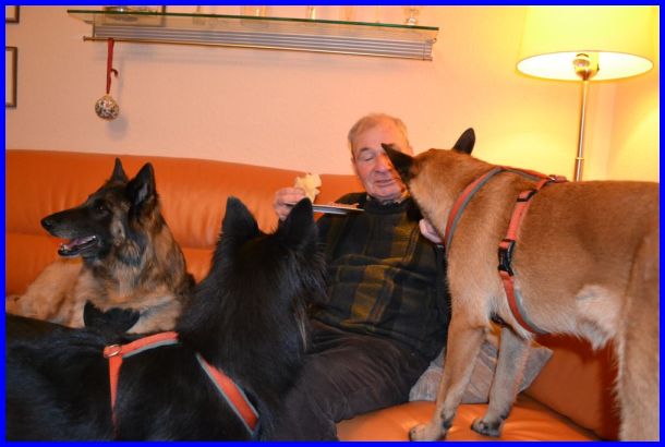 Der zweite Versuch, super geklappt! Von links nach rechts Isaak, Avanti und sitzend Akela.