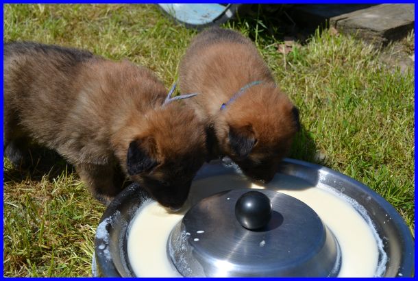 Am 14.025.2016 gab es das erste Mal Tockenfutter, die Welpen müssen lernen zu kauen, ihre Zähne zu benutzen!