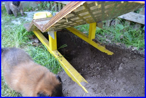 Hier ist mal ein Blick in die Höhle! Sie ist ungefähr 50cm tief und auch so lang. Rüde Blau schläft sehr gern in der Höhle.