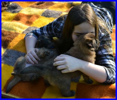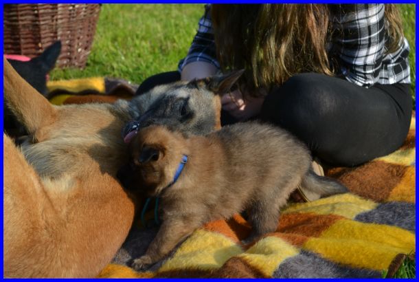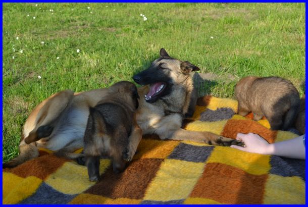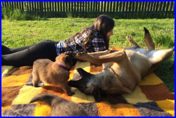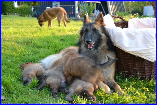 Glückliche Akela, jetzt darf sie mit den Babys kuscheln, Farouche erlaubt es ihr auch, aber nur solange wir Menschen dabei sind!