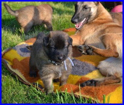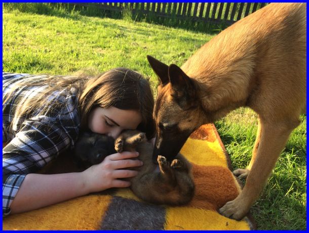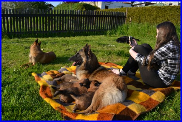 Am 05.05.2016 waren die Welpen das erste Mal im Garten, da waren sie genau drei Wochen und drei Tage alt. Sie wachsen und gedeihen prächtig und waren von der neu gewonnenen Freiheit total begeistert. Vanessa war auch da und hat sich sehr liebevoll um jeden einzelnen gekümmert. Am Abend waren sie dann von den neuen Eindrücken total geschafft und haben tief und fest geschlafen, mit sehr lebhaften Träumen!