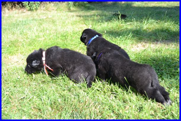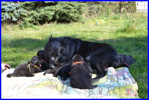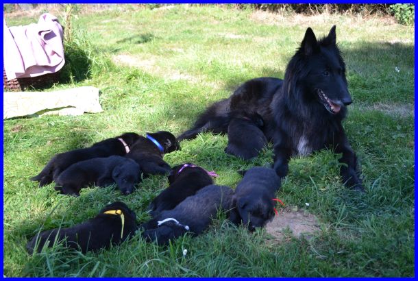 Das war alles so aufregend! Nun sind die kleinen Kronjuwelchen erschöpft, satt und träumen im kühlen Schatten vom ersten Abenteuer im Garten. YooPee wacht über ihre Babys, lässt keine anderen Hunde an sie heran kommen.