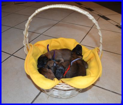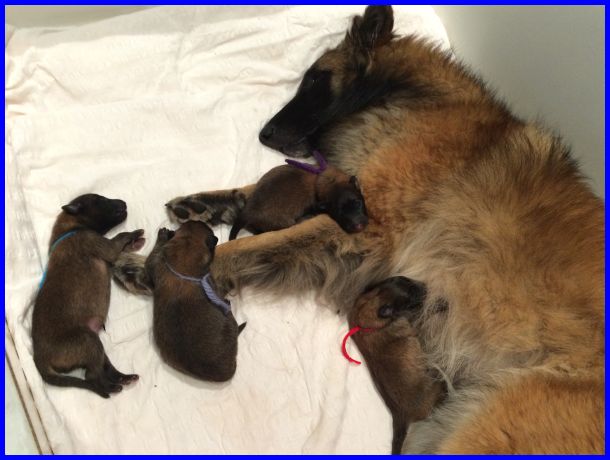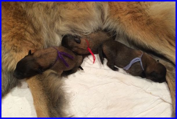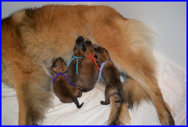 Am 11.04.2016 setzten die Wehen ein und die Geburt meines J-Wurfes begann. In genau einer Stunde und 20 Minuten brachte Farouche vier gesunde und putzmuntere Welpen zur Welt. Perfekt geteilt in zwei Paare purzelten zwei wunderschöne Rüden und zwei hübsche Hündinnen in die Welt. Farouche und den Babys geht es sehr gut, die kleinen "Juwelchen" entwickeln sich prächtig, haben schon am ersten Tag zugenommen.