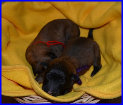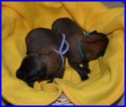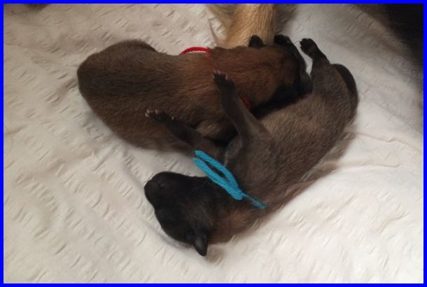 Auf den nachfolgenden Fotos sehen Sie die Welpen in den verschiedensten Schlafpositionen, denn schlafen und trinken und wieder schlafen und trinken ist für die nächsten 14 Tage die Hauptbeschäftigung der Welpen.