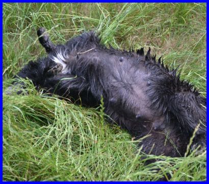 Nach dem Baden wird sich ausgiebig gewälzt auf der Wiese. |