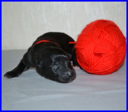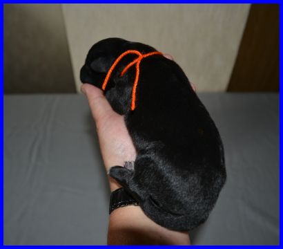 Damit der erste kleine Rüde nicht so alleine ist, hier ist der zweite Rüde. Er ist auch der Welpe mit dem höchsten Geburtsgewicht.