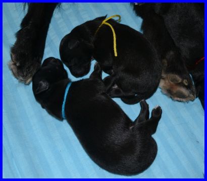 Der erste Rüde und die zweite Hündin, 40g wiegt der Bub mehr, das sieht man bei der Größe noch!