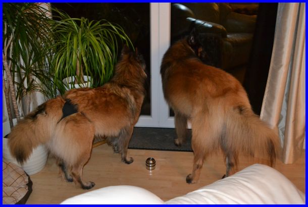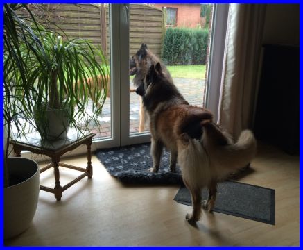 Unfassbar, die ganze Zeit im Garten und auch beim Spaziergang, die Zwei haben nur gespielt! Wir dachten schon, dass klappt nie! Und dann :-) still und heimlich, versteckt vor neugierigen Augen und Kameras, zwischen Sessel und Sofa, vergnügten sich die zwei Turteltauben!!! Wir waren sprachlos!